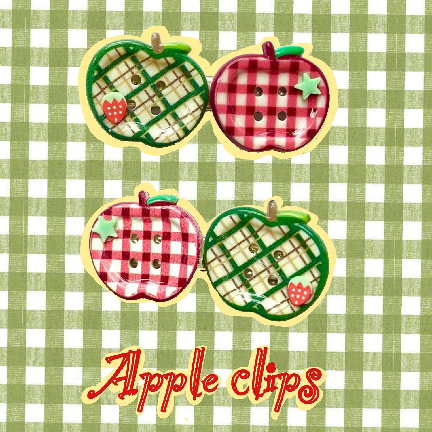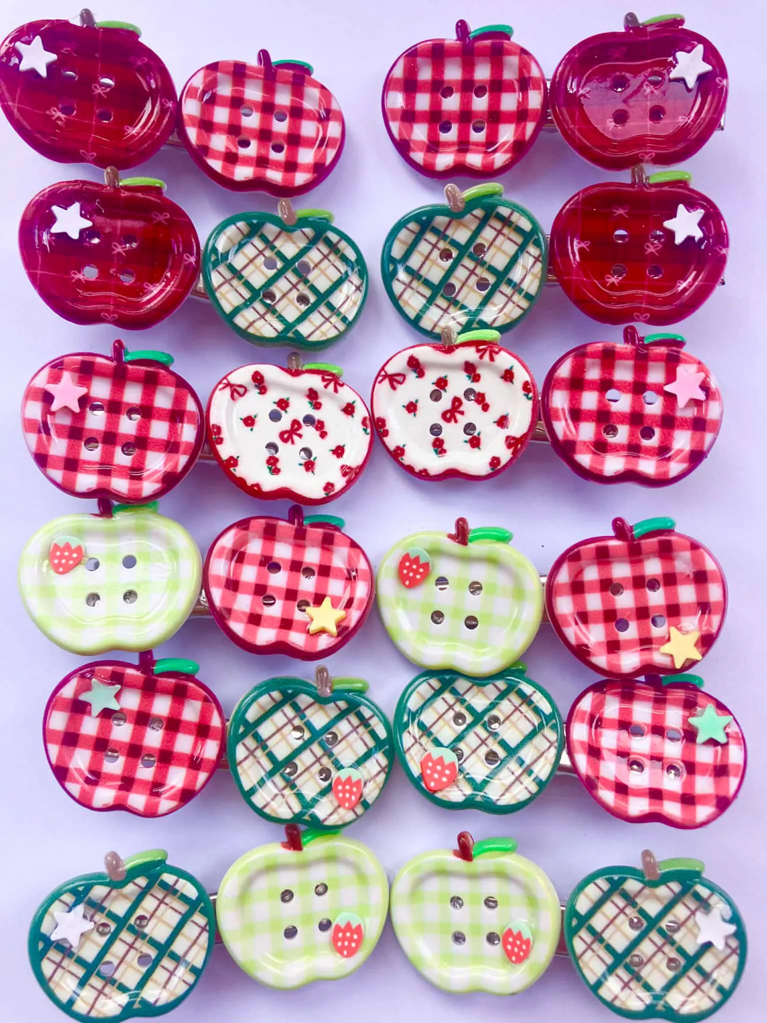 two apple button hair clips