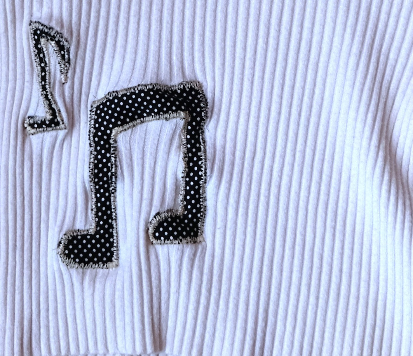 hand sewn musical notes applique from recycled fabric.