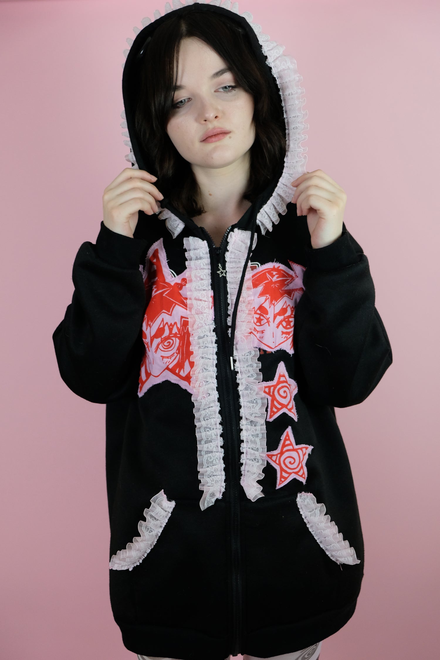 hand sewn polyester lace trim.